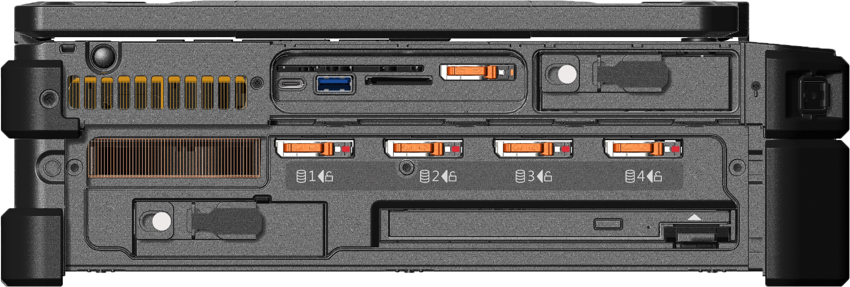 Getac X600 SERVER je popolnoma funkcionalen komercialni mobilni strežnik (COTS), ki se zloži v tanek prenosni profil. Strežnik X600 je zasnovan za agilnost na terenu, hkrati pa ohranja celovito zmogljivost strežnika. To je popolnoma robusten in zelo vsestranski prenosni računalnik, ki ponuja zmogljivosti mobilnega strežnika v omari, ki ga je mogoče v trenutku uvesti v scenarije mobilnega ukazovanja in nadzora. Strežnik X600 lahko gosti več neodvisnih platform navideznih strojev, kar zmanjša vašo potrebo po vlaganju v več strežniških sistemov. In z operacijskim sistemom Windows Server 2022 je vire mogoče prilagodljivo dodeliti različnim virtualnim sistemom glede na potrebe posameznih uporabnikov. Upravljanje diskov je izboljšano s krmilnikom RAID na osnovi strojne opreme s konfiguracijo RAID 5; zagotavlja optimalno ravnotežje med zmogljivostjo, zmogljivostjo, zanesljivostjo in varnostjo. Strežnik X600 je mogoče izboljšati z nadzorom RAID na osnovi strojne opreme za izboljšano fleksibilnost, zanesljivost in redundanco shranjevanja podatkov. Strežnik X600 poveča izbirno shranjevanje podatkov do 22 TB1, DVD (ali izbirni Blu-Ray) super multi-pogon, do dve dodatni bateriji ter oba bralnika kartic ExpressCard 54 in PCMCIA tipa II kot standard, vse v ohišju, kar povečuje vaše zmogljivosti naprave, ne da bi vaši delovni površini dodali nered. Popolnoma robustna zasnova strežnika 600 preprečuje, da bi dež, prah in ekstremne temperature ogrozili delovanje, tako kot njegov 15,6-palčni zaslon, berljiv na sončni svetlobi (1000 nits) z izbirnim kapacitivnim zaslonom na dotik z večkratnim dotikom, ki vključuje našo lastniško tehnologijo LumiBond®. Pod pokrovom je procesor Intel® Xeon® 11. generacije z 18 MB Intel® Smart Cache in tehnologijo Intel® Turbo Boost do 4,9 GHz. Strežnik X600 ponuja raznolik nabor varnostnih funkcij. Zaradi varnosti podatkov lahko vse shranjevalne pogone uporabnik odstrani brez orodja, pri čemer je vključen tudi namenski mikroprocesor Trusted Platform Module (TPM) 2.0, ki omogoča popolne zmožnosti šifriranja pogona in vrsto drugih izboljšav pri preverjanju pristnosti. Strežnik X600 se brezhibno integrira z različnimi žičnimi omrežji, strežniki in napravami za shranjevanje. Fiksna povezljivost vključuje 2,5G BASE-T Ethernet (x2) za izjemno hitro hkratno povezavo z več strežniki in/ali omrežji, medtem ko vgrajeni Thunderbolt 4 (USB-C) in HDMI 2.0 omogočata povezljivost z dodatnimi monitorji. Vse polprevodniške pomnilniške diske (SSD) X600 Server lahko uporabnik odstrani in ne uporablja orodja, kar omogoča izboljšano varnost podatkov med shranjevanjem v napravi in večjo priročnost med uporabo. Vse baterije lahko uporabnik tudi odstrani brez orodja in jih je mogoče zamenjati (tj. vroče zamenjati) brez prekinitve delovanja naprave. Server X600, zasnovan za preživetje in delo v ekstremnih razmerah na prostem, bo deloval v dežju, prahu, udarcih in vibracijah. Ta popolnoma robusten prenosnik ima certifikat MIL-STD-810H, MIL-STD-461G in IP66, da vzdrži temperature od -29 °C do 63 °C (-20 °F do 145 °F).